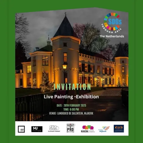 De 14e editie van ‘SDGs through Arts’ vindt dit jaar plaats in de gemeente Nijkerk. Tijdens dit evenement schilderen 17 Nederlandse kunstenaars live een kunstwerk, elk geïnspireerd op een van de 17 Duurzame Ontwikkelingsdoelen (SDG’s) van de Verenigde Naties. Dit gebeurt in samenwerking met Elephant Parade en Nicole des Bouvrie.