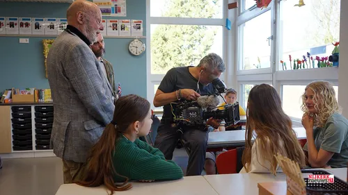 Onder andere op 3 april maakten Koelewijn en zijn cameraman de opnames in Kindcentrum Spreng.