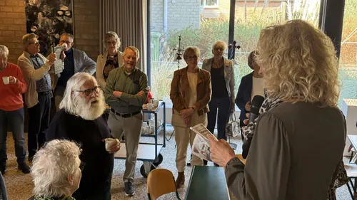 Ook de kunstenaar kreeg de microfoon om een toelichting te geven. De expositie is tijdens de 40 dagentijd gratis te bezoeken op een aantal zaterdagen en zondagen.