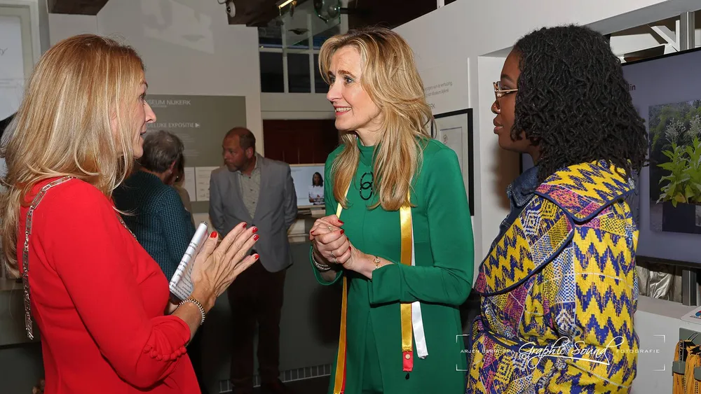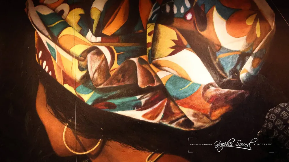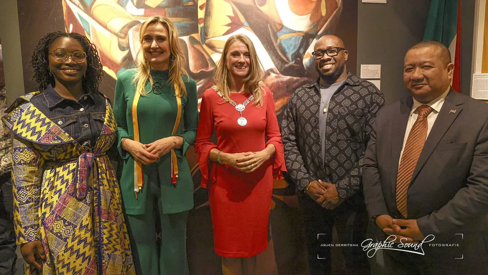 Het kunstwerk "De taal van 222 vrouwen" van Alfrédo Doornkamp werd aan het einde van het officiële gedeelte onthuld. Daarna was het tijd voor Surinaamse hapjes en een drankje.