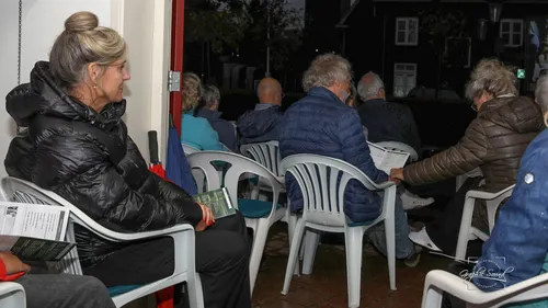 Een vaste groep luisteraars kwam er voor naar de luisterplaats, waar vanwege de stromende regen een tent was neergezet.