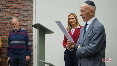 Jan Dokter, oorlogsoverlevende en 90 jaar inmiddels, is de initiatiefnemer van het Westerborkpad. Samen met wethouder Cultuur Marianne Klein onthulde hij woensdagmiddag hij het object in de tuin Museum Nijkerk.