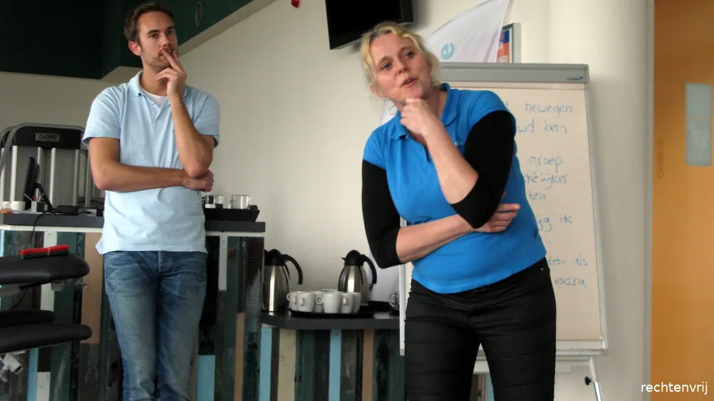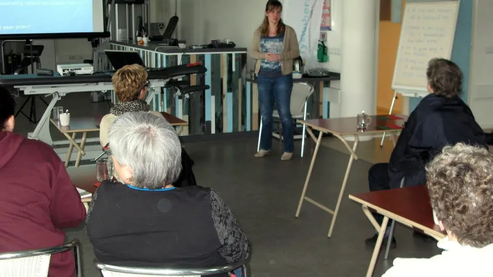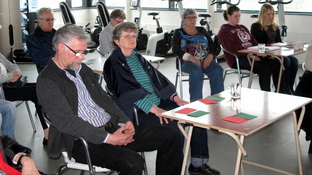 Vanuit hun vakgebied benadrukten de fysiotherapeuten Margriet Eenjes en Cees de Wolf jr, alsmede oefentherapeute Cesar Melissa Smit (van Corlaer en De Nije Veste) het belang van bewegen bij longpatiënten. Ook de invloed van de adem, als ook het gevoel en de gedachten onder de aanwezigen in relatie tot bewegen, kregen volop de aandacht. Bij het beantwoorden van de vragen gingen rode dan wel groene kaarten als antwoorden de lucht in. Er was een goede interactie. De gezelligheid werd ondersteund door geurende koffie en thee; een lekker koekje ontbrak niet.
