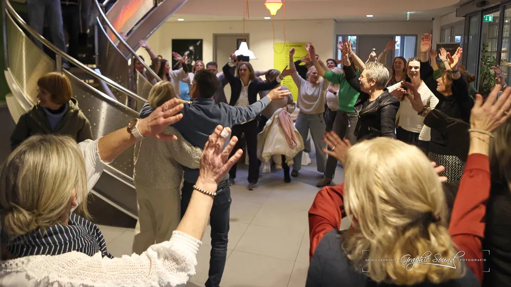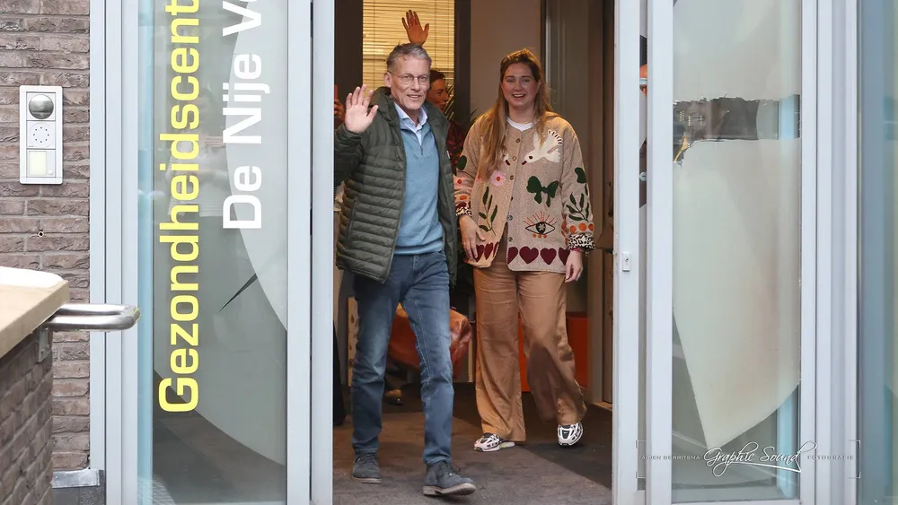 De receptie voor patiënten begon om 16.00 uur. Honderden mensen kwamen langs om afscheid te nemen en Hans te bedanken voor zijn jarenlange zorg. De rij stond tot ver buiten de zaal. Dit toont de waardering voor de huisarts.