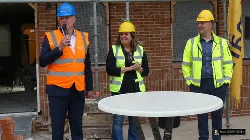 De woningen zijn ook geschikt voor een- of tweepersoons huishoudens. Het project is gasloos en iedere woning krijgt een warmtepomp. Alle aanwezige bouwers werden na afloop van het hijsen van de vlaggen getrakteerd op een portie friet met wat extra's.