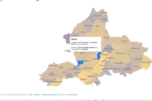 In Nijkerk wordt inmiddels een op de 17 huizen elektrisch verwarmd. Iets meer dan de helft verwarmt het huis helemaal elektrisch.