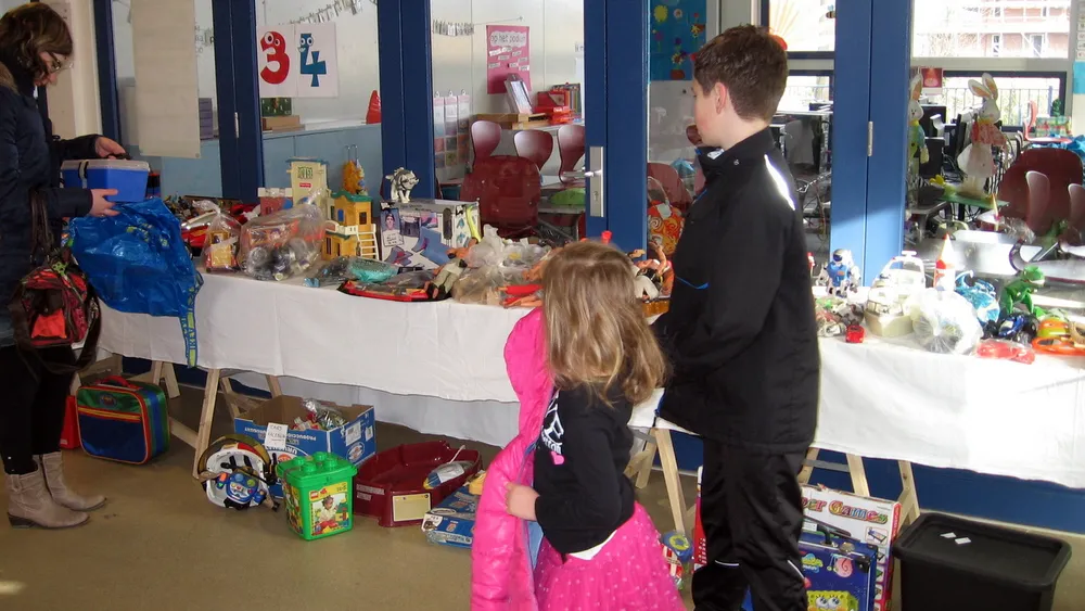 Het succes van de Basisschoolbeurs is mede te danken aan het feit dat ruim 100 verkopers goede tweedehands kinderkleding, speelgoed, sportartikelen, schaatsen en dvd’s ingebracht hebben.