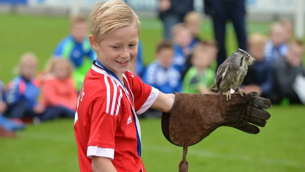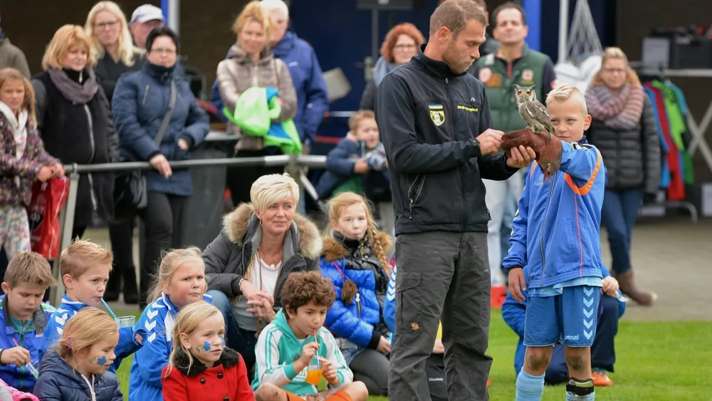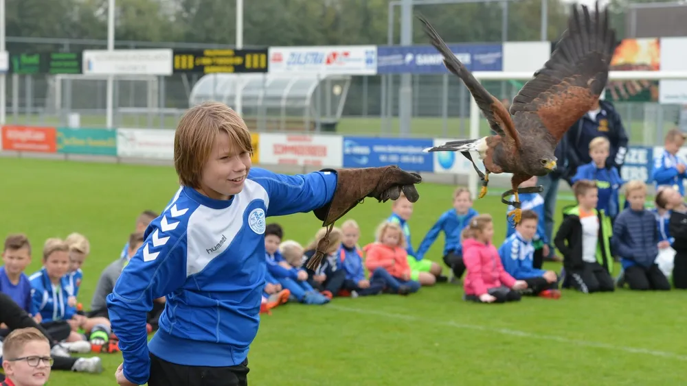 Tijdens de jeugddag bij Veensche Boys vond woensdagmiddag een grote roofvogelshow plaats door roofvogelbedrijf De Valk.