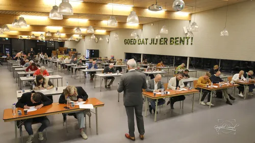 In de aula van het vmbo-gebouw van het Corlaer College vond woensdagavond 9 oktober het Groot Nijkerks Dictee plaats.