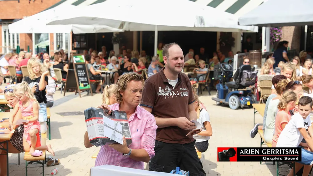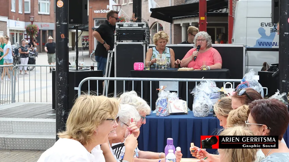 Donderdag is het tijd voor de braderie en voor de Nacht van Nijkerk. Het Plein liep rond half negen al aardig vol. Het is de avond van de vakantieverhalen, die goed te vertellen zijn, omdat de muziek op het Plein dan niet overheerst. Velen liepen ook het rondje over het Singel Oosterstraat, Langestraat en Verlaat. Veel winkels waren dit jaar - dank zij de inspanningen van de NOV - wel open. Het aantal kramen mocht redelijk genoemd worden. De regen viel even, het mocht de pret niet drukken.