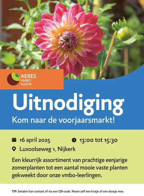 Locatie: Aeres VMBO Nijkerk, Luxoolseweg 5 Tijd: Woensdag 16 april 2025, van 13.00 tot 15.30 uur