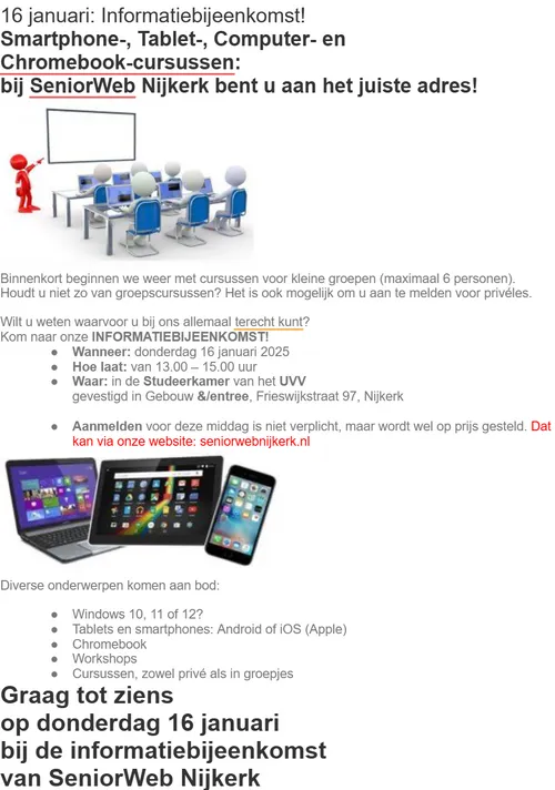 16 januari: Informatiebijeenkomst Seniorenweb