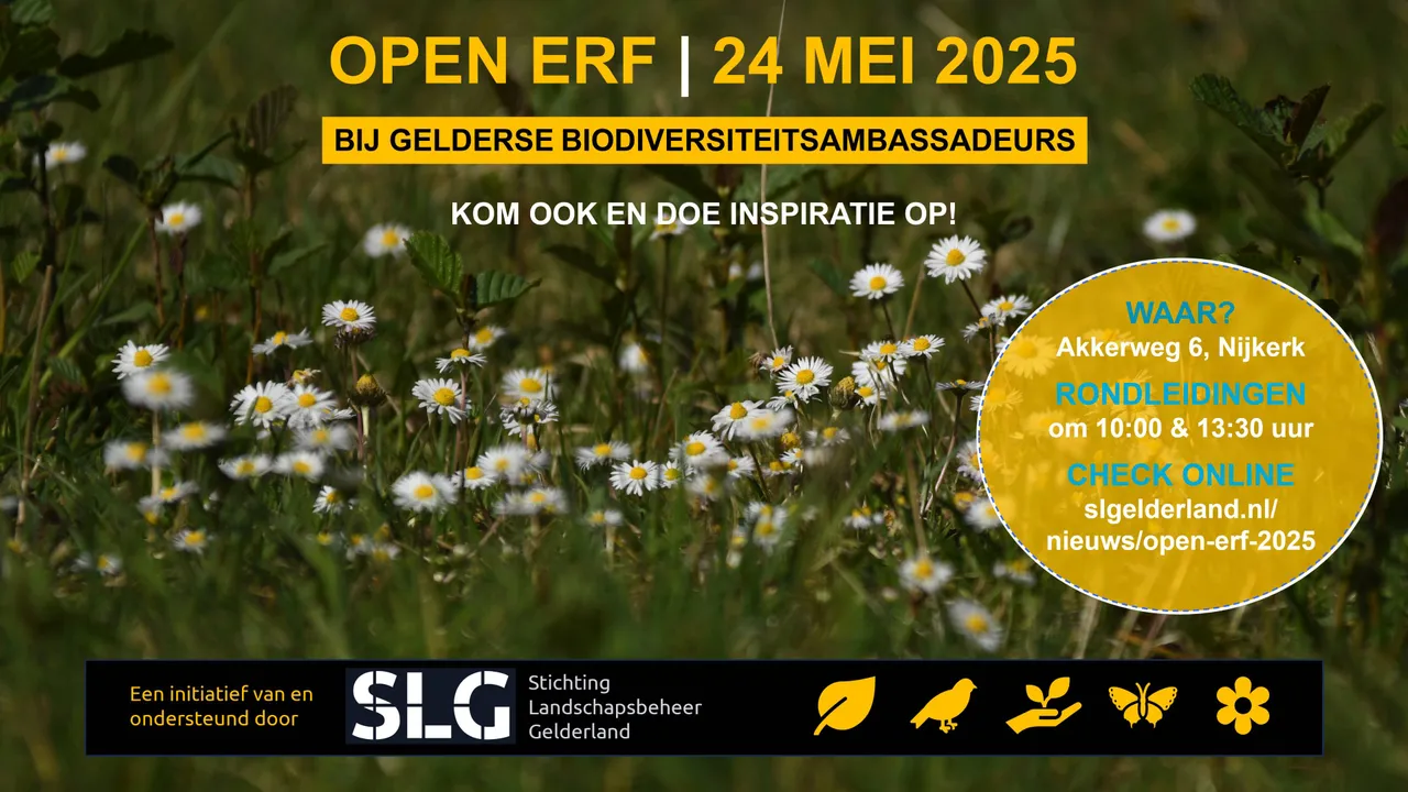 Wil je inspiratie opdoen en vind je het leuk om kennis te maken met de ambassadeur? Kom dan naar de Dag van het Open Erf. Meld je vooraf aan bij Bram en Kris. Kijk voor meer informatie en aanmelden op de stie van de SLG.