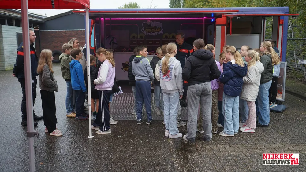 Maandagmorgen kwam de eerste school, de Ichtus. Burgemeester Tinet de Jonge leerde de kinderen, dat ze later naast hun gewone werk ook nog bij de vrijwillige brandweer kunnen gaan.