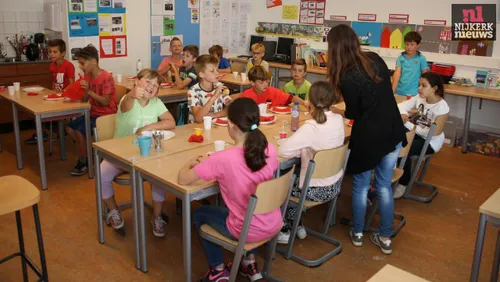 Omdat de samenleving ook veel te maken heeft met vluchtelingen en asielzoekers, werden er lessen van mensen, die niet in Nederland zijn geboren. Door gastlessen van een Marokkaanse moeder, een Indonesische opa en een Surinaamse man.weten ze nu heel veel over de redenen, die er kunnen zijn om te vluchten en wat een vluchteling onderweg allemaal tegen kan komen. De gastdocenten hebben met de klas nagedacht hoe ze deze mensen zouden kunnen steunen. Met de kinderen is een sponsoractie bedacht om 24 uur niet te eten. De actie startte afgelopen donderdag om 8:30 uur in de gymzaal en werd vrijdag 10 juni met een ontbijt op school afgesloten. De klas gaat van donderdag op vrijdag op school slapen om elkaar te helpen in het 24 uur vasten. De opbrengt van de actie gaat naar de kinderen van de asielzoekers in Nijkerk. Hiervoor hebben we contact gehad met vluchtelingenzorg. Deze kinderen kunnen heel goed een financieel steuntje in de rug gebruiken. In Nederland vragen de kinderen vaak: “Wat eten we vandaag?” terwijl een vluchteling kind de vraag kan stellen”: “Eten we vandaag?”