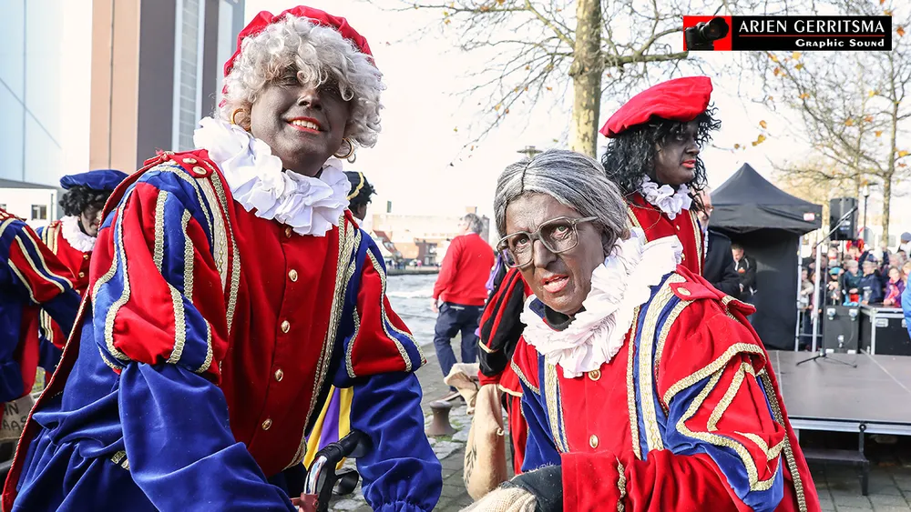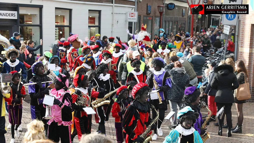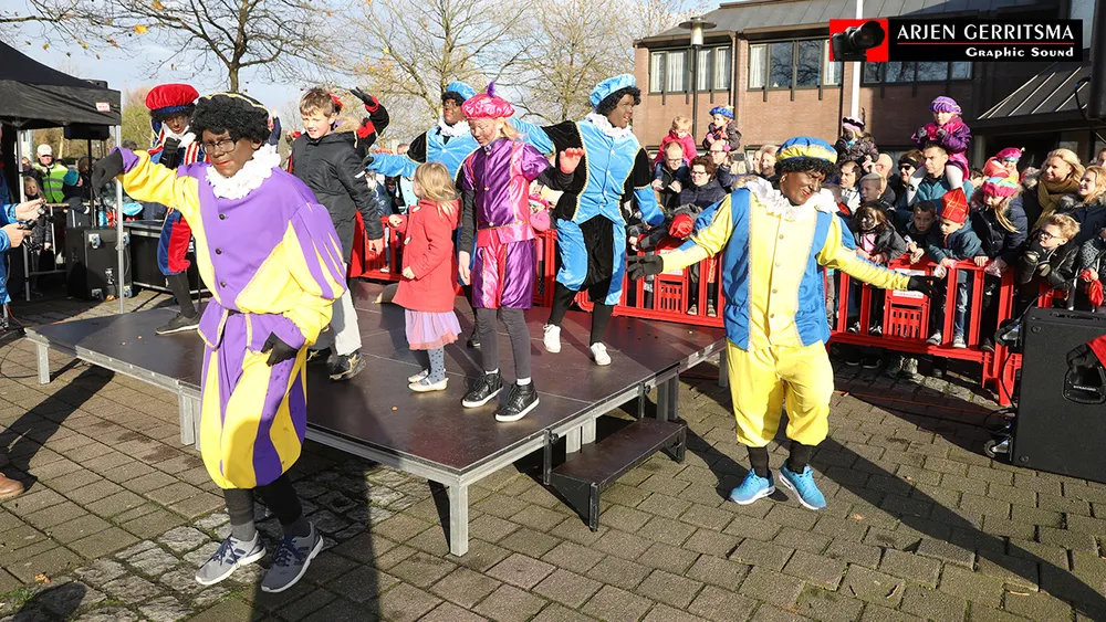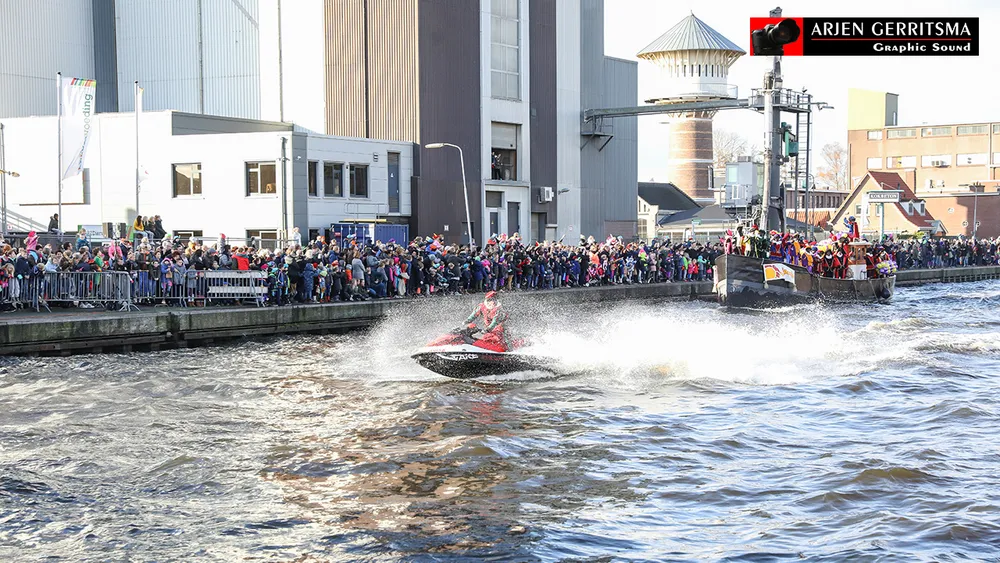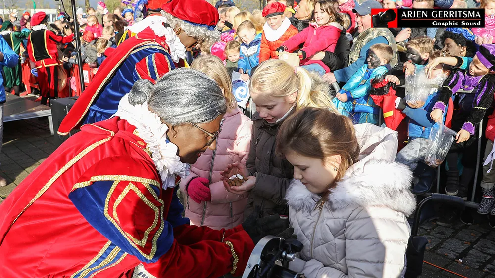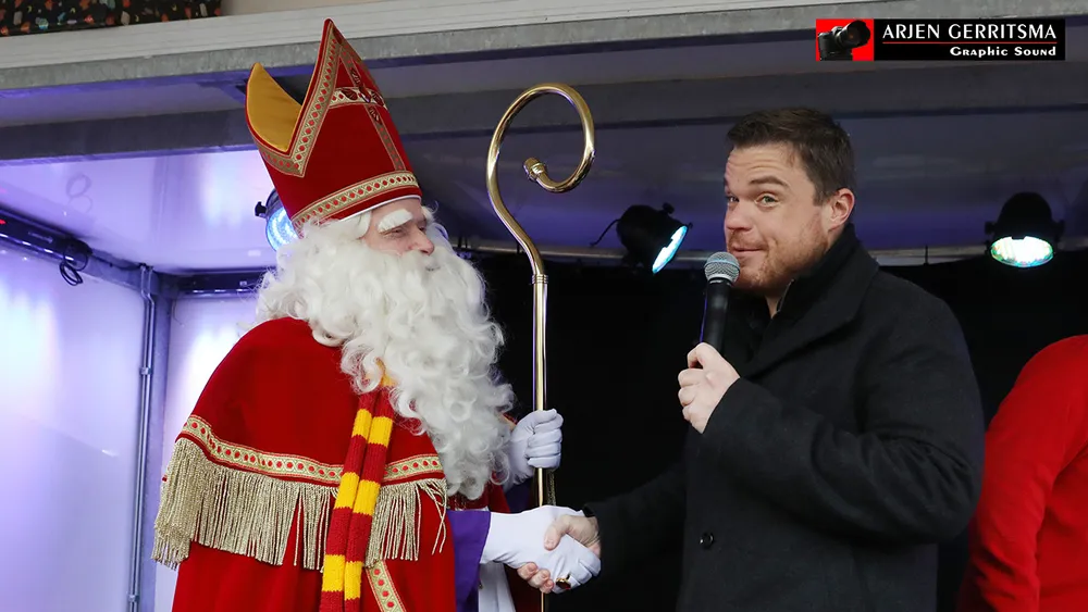Rondom de haven was het afgeladen druk en werd Sint met veel gezang en dans onthaald. Daarna vertrok hij voor een tocht door de stad, die eindigde op het Molenplein. Daar eindigde het feestje met veel regen en een geluidsinstallatie, die het liet afweten. Niet dat dat veel uitmaakt, de ogen van de kinderen zijn vooral op de schoen gericht. Die wordt vanavond massaal gezet. Dat is zeker.