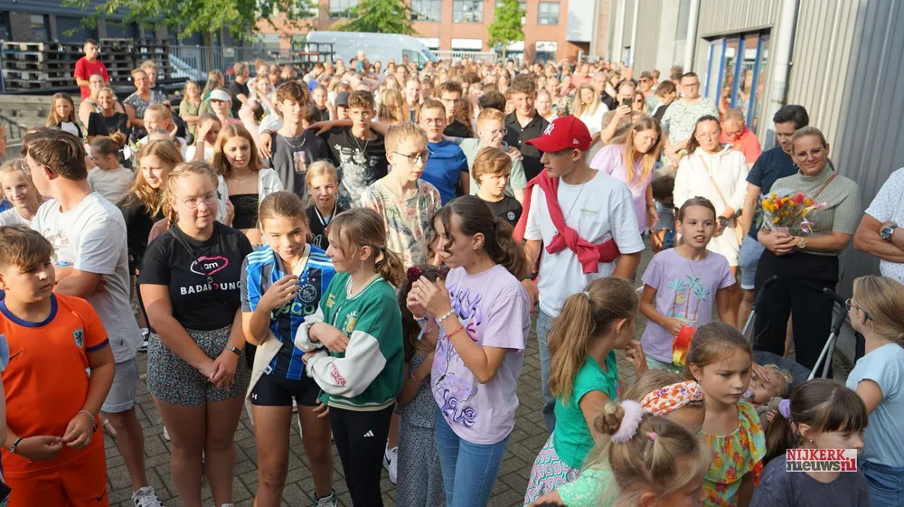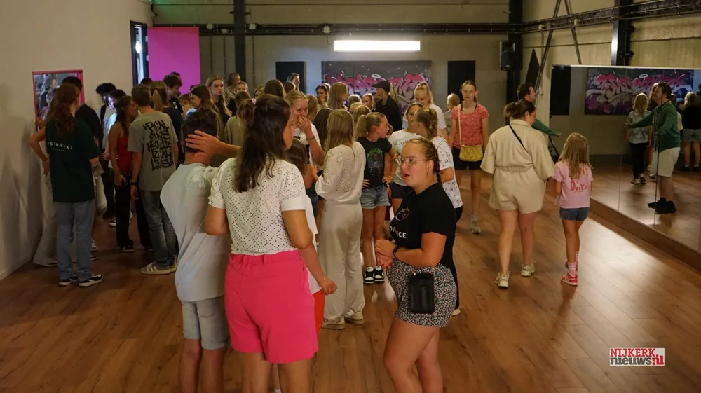 Logisch, want Badabounce is een grote dansschool, Oudes en leerlingen verzamelden zich rond 18.30 uur voor de opening. De leerlingen dansten naar de school.