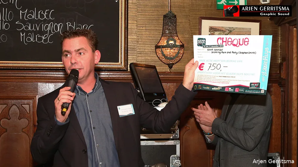 Na al dit verrassende nieuws presenteerde Peter Dirksen de sponsormogelijkheden. Bedrijven bleken tijdens de borrel na afloop van harte bereid te investeren in de goede doelen waarvoor het Glazen Huys Nijkerk zich inzet. De eerste sponsorcontracten werden getekend, unieke veilingitems aangedragen en acties voorbereid. Samen met de enthousiaste crew en vele vrijwilligers, gaat ondernemend Nijkerk voor een mooi resultaat.
