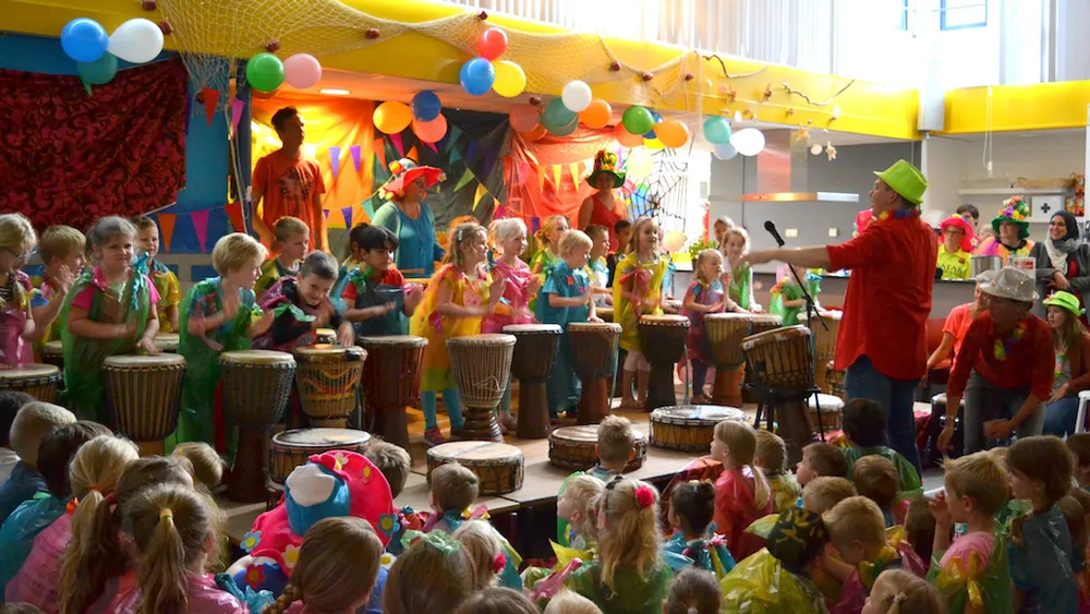 Allereerst stonden er diverse spetterende optredens op het programma en werden door alle groepen diverse Afrikaanse trommels en djembe's bespeeld in het kader van het Zomerfeest. Uit voorzorg werd, vanwege verwachte weersveranderingen, het programma binnen opgestart.