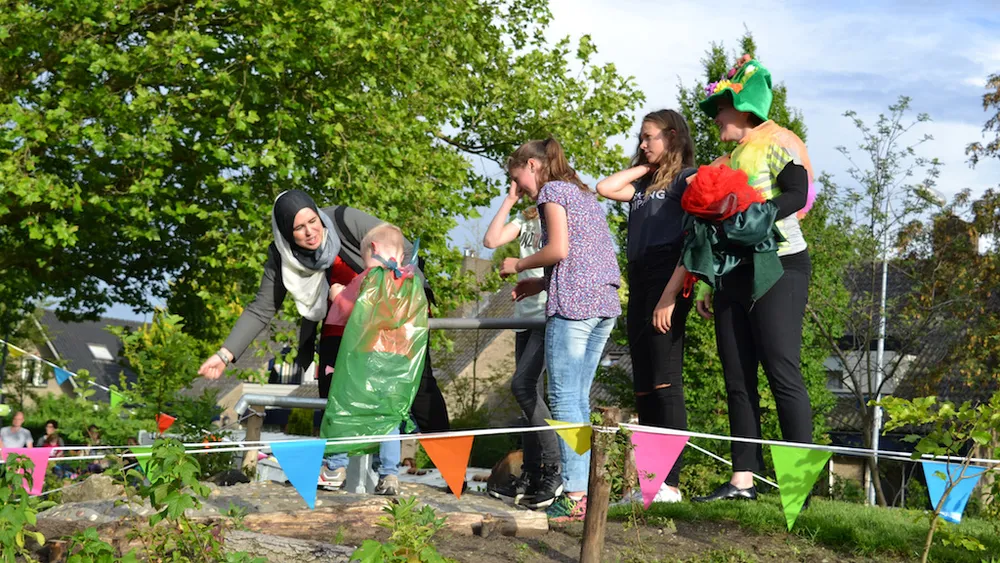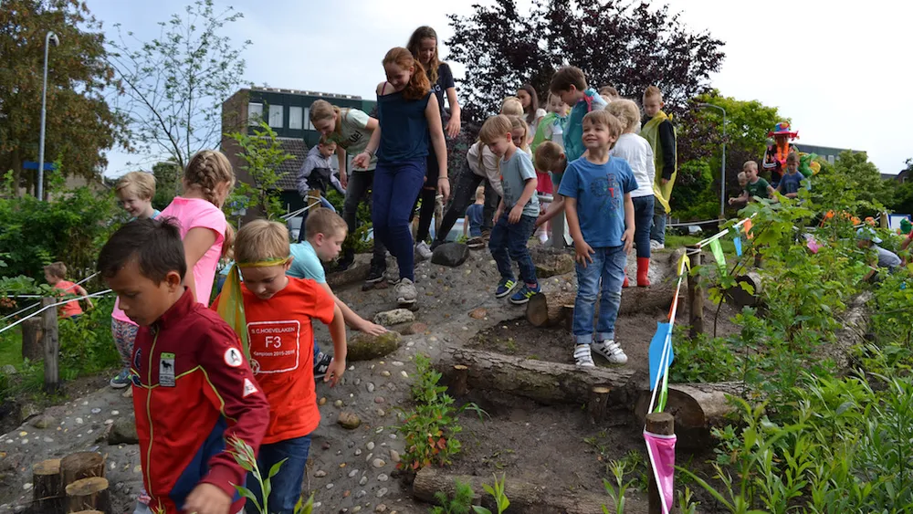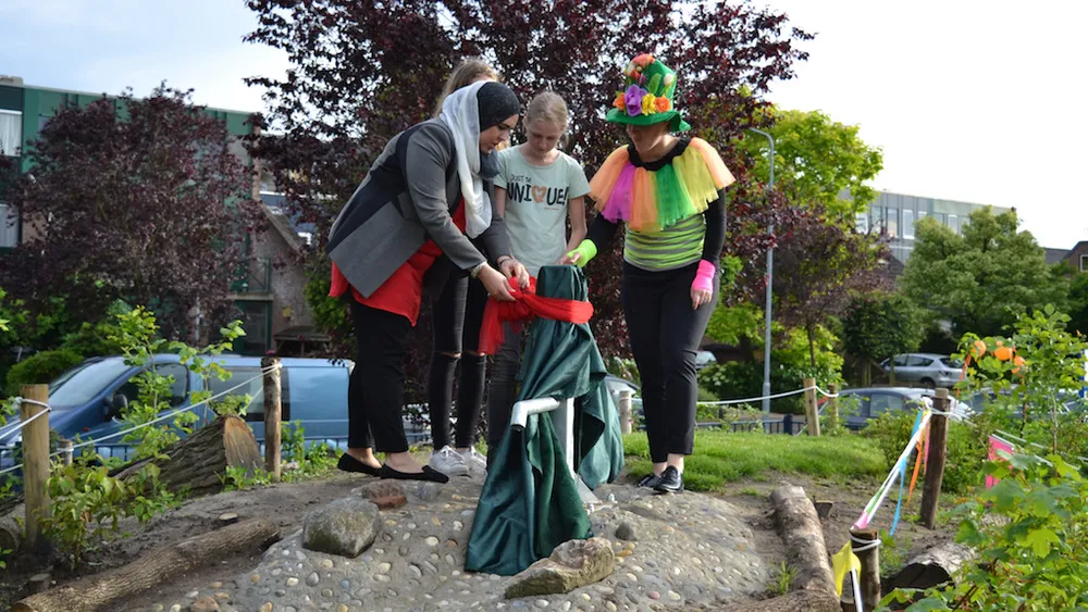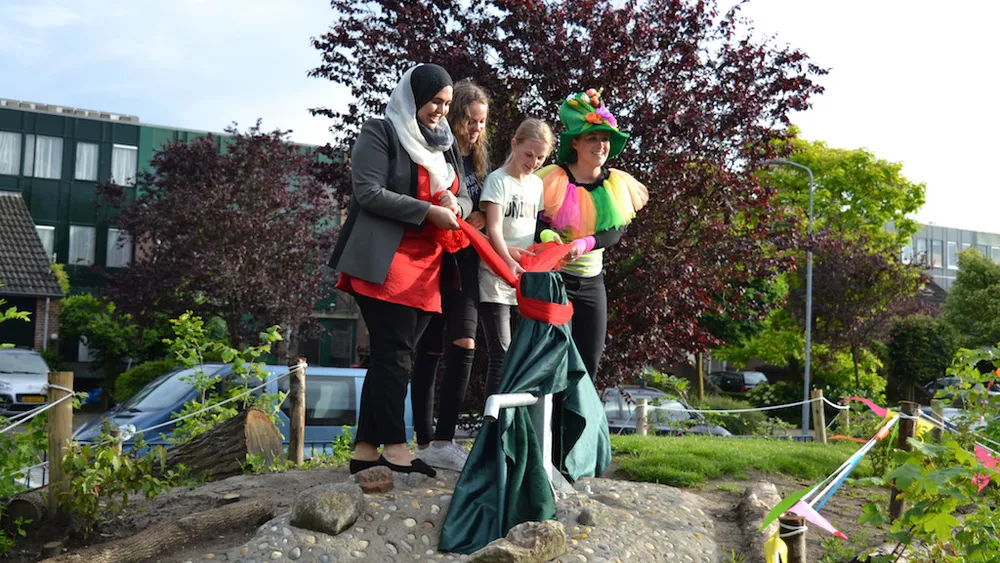 Daarna werd het woord gegeven aan wethouder Aboyaakoub-akkouh die vol enthousiasme de kinderen vertelde dat je in een Beleeftuin veel kan doen, zoals samen spelen, lieveheersbeestjes tellen, je even terugtrekken maar ook het pesten vermindert omdat je samen bezig bent. Tot slot riep ze op vooral veel plezier in de Beleeftuin te hebben in de "eerste Natuurlijke Beleeftuin van Hoevelaken".
