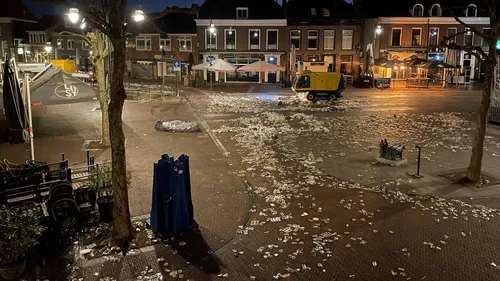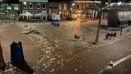 Pas de volgende morgen vanaf 5 uur wordt het Plein schoongemaakt.