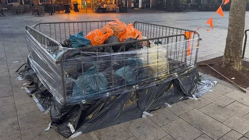 De Oranjevereniging en de horeca rondom het Plein in het centrum van Nijkerk hebben samen de rommel na Koningsdag nog opgeruimd.