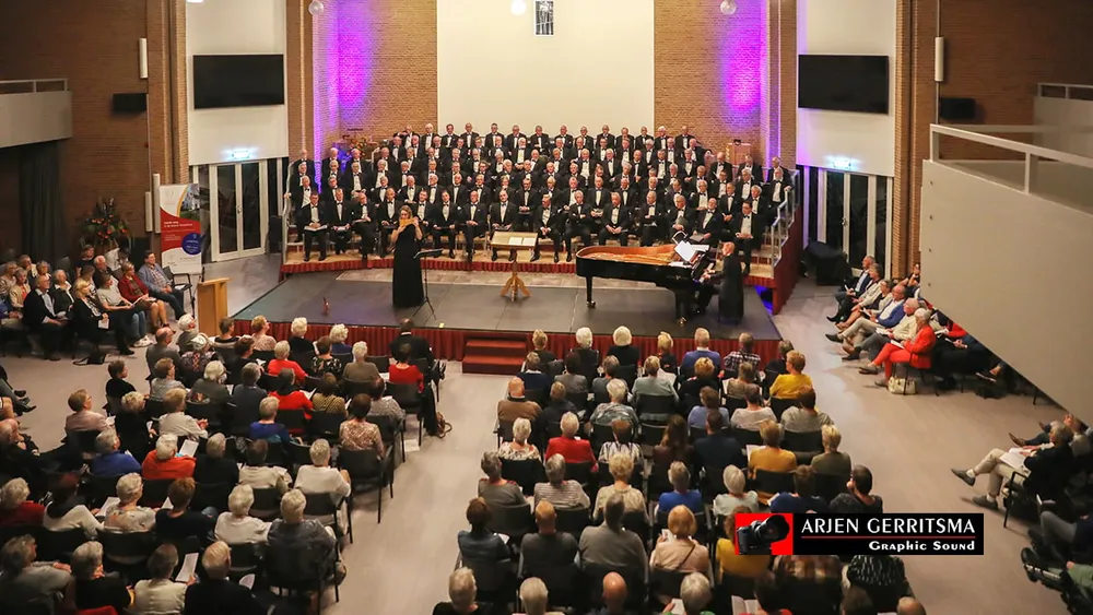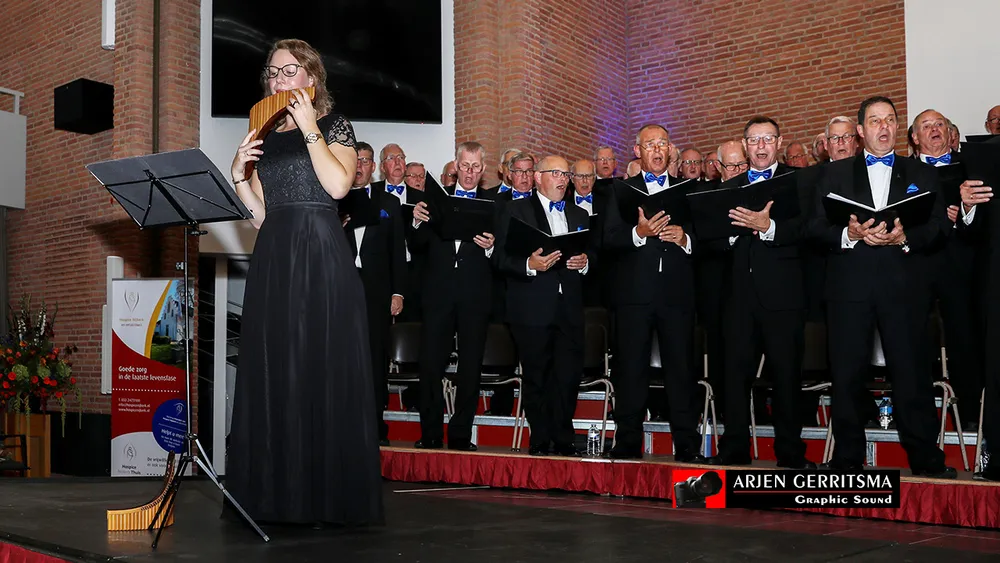 Het Christelijk Streekmannenkoor NW-Veluwe gaf donderdagavond een prachtig benefietconcert met mooie, sfeervolle en toepasselijke liederen. Na afloop van het concert mocht voorzitter Nagel van de stichting Hospice Nijkerk e.o. uit handen van de penningmeester Krijkamp een cheque van 5500 euro in ontvangst nemen