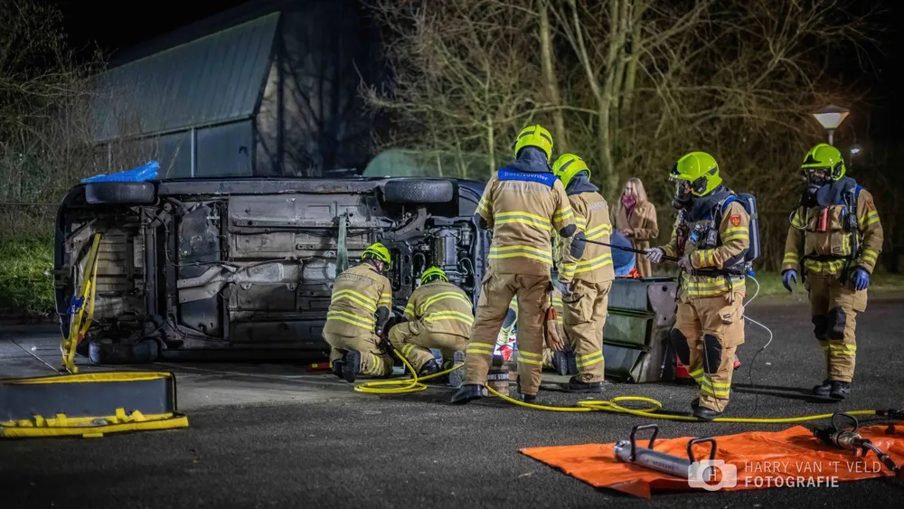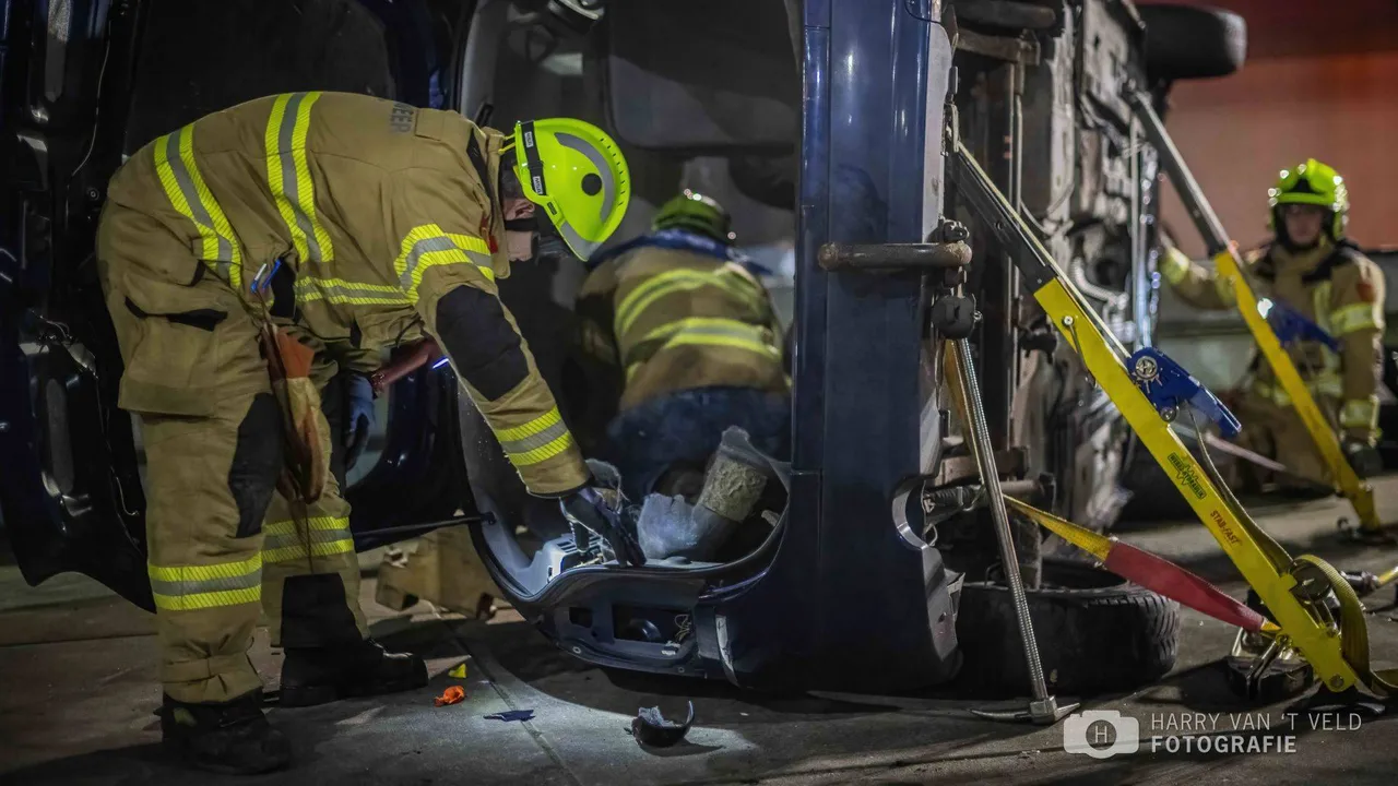 Ze zag dat er een auto op de kant lag met een gewonde erin. Deze is eruit gehaald.