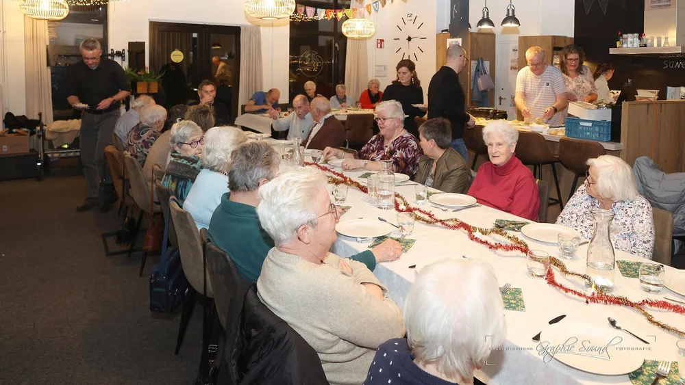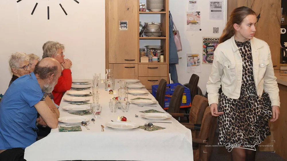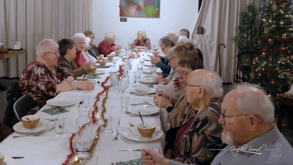 Het Paashuis was warm en sfeervol aangekleed en er stond een speciaal samengesteld menu op tafel. Buurtbewoners schoven aan om samen, in een gezellige kerstsfeer, te genieten van een heerlijk viergangendiner. Een waardevol moment van samen eten, bijpraten en vooral veel gezelligheid, zo vlak voor de kerstdagen.
