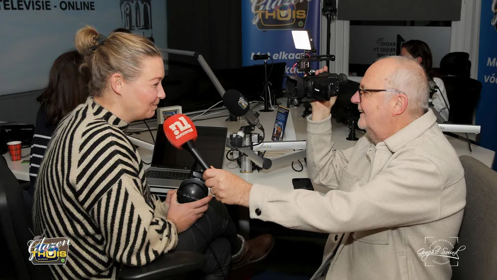 Ely Hackmann nam een kijkje in de studio van de A1 mediagroep, waar de stemming opperbest was.