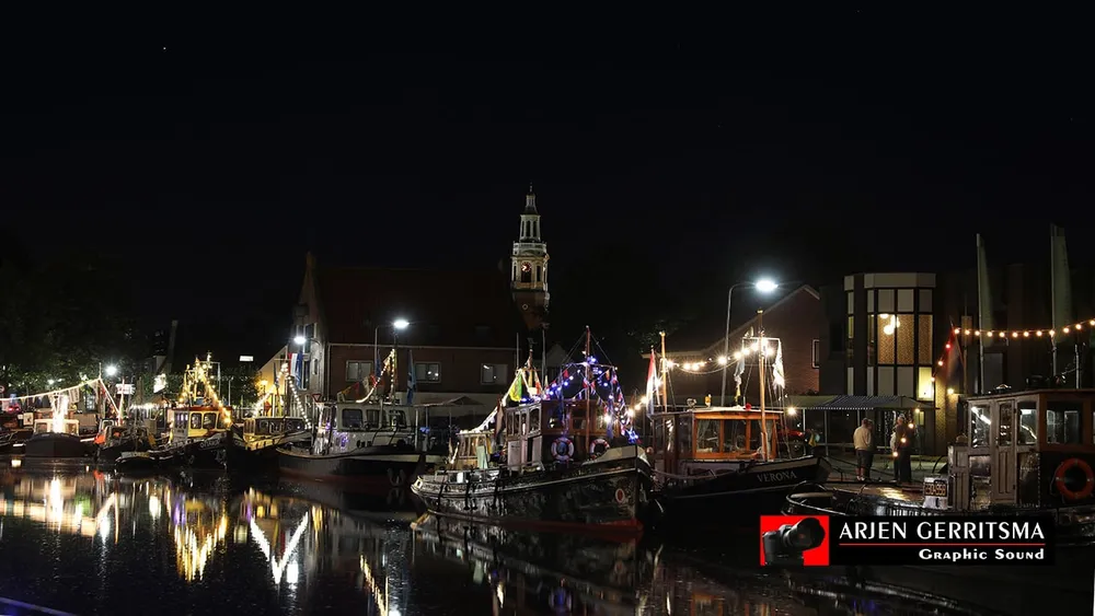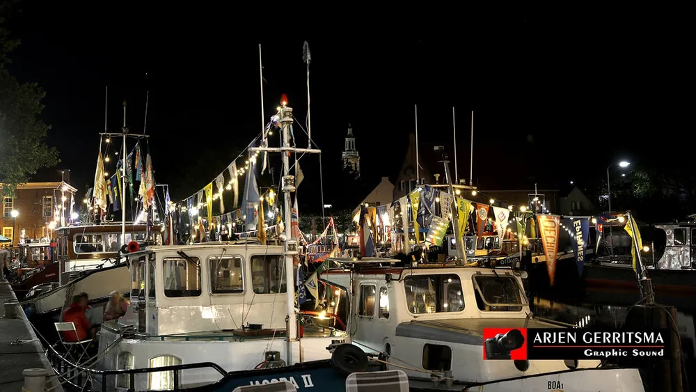 Vrijdag kwamen de laatste boten aan en was het tijd voor gezellig samen zijn. Bijvoorbeeld tijdens het Captainsdiner voor de schippers. Na achten trad buiten Paddy’s Passion (Ierse muziek) bij de verlichte sleepboten op