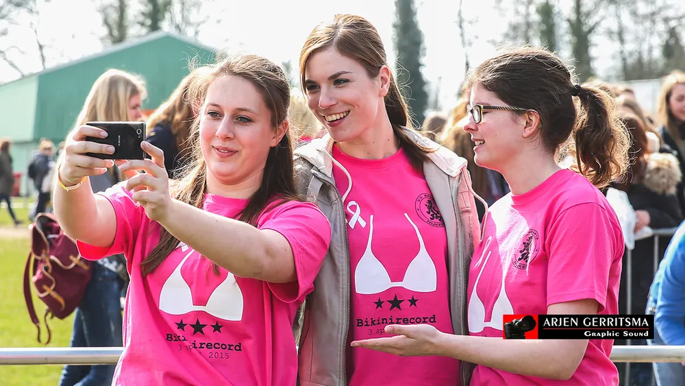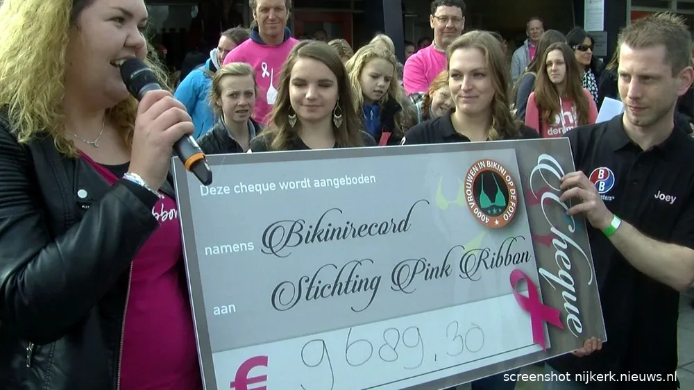 Op vrijdag 3 april hebben 1842 vrouwen zich in bikini laten fotograferen voor het goede doel Pink Ribbon. Zij brachten daarmee € 9.689, 30 bijeen.
