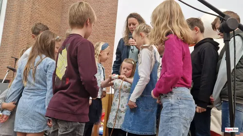 Na de dienst waar Kinderkoor Eigenwijs en de jeugdband Reform van de Kruiskerk. De verrassing was een Springkussen! Het springkussen is mogelijk gemaakt door de Bazar en de talentenactie van de kinderen zelf vorig jaar.