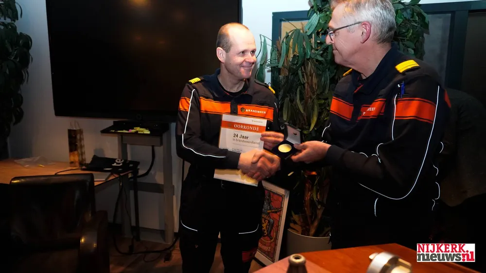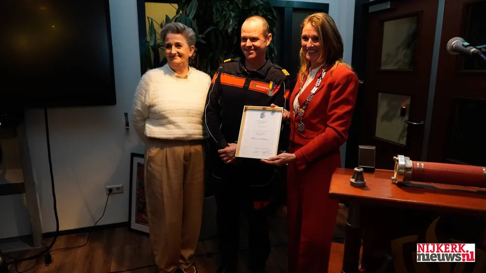 Burgemeester Tinet de Jonge-Ruitenbeek reikte de onderscheiding uit tijdens zijn afscheidsreceptie. De 53-jarige Nijkerker krijgt deze eer vanwege zijn lange staat van dienst als vrijwilliger bij de brandweer.