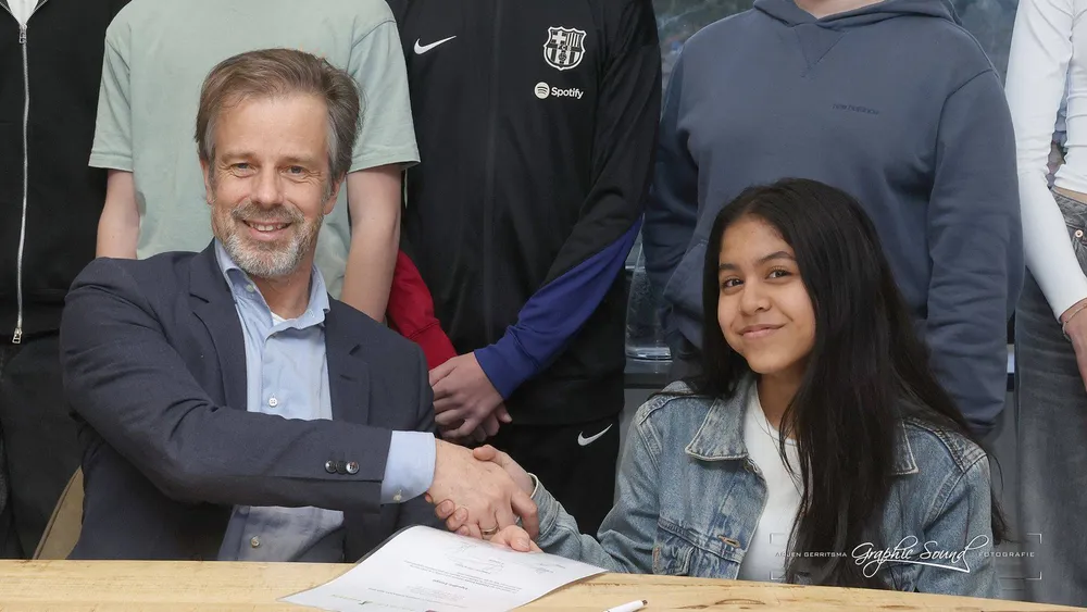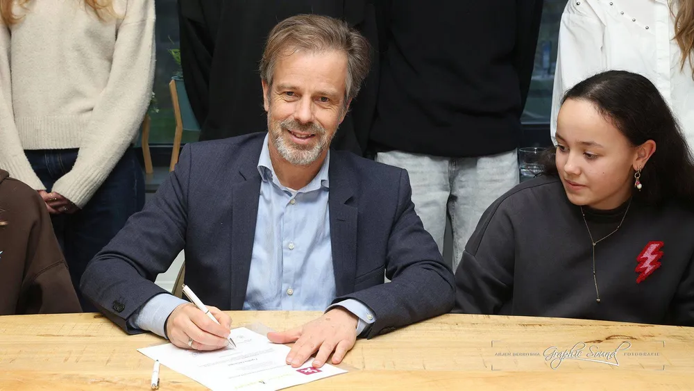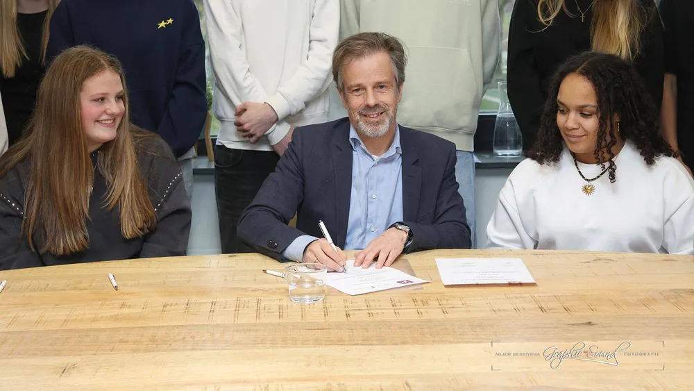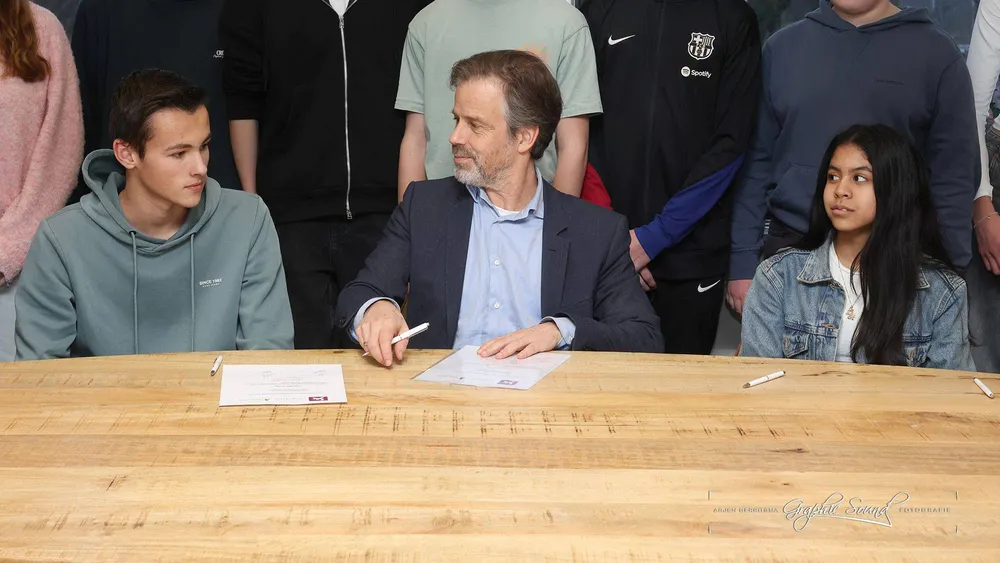 Plaatsvervangend rector Ronald Schaefer tekende mee, keek toe en zag, dat het goed was.