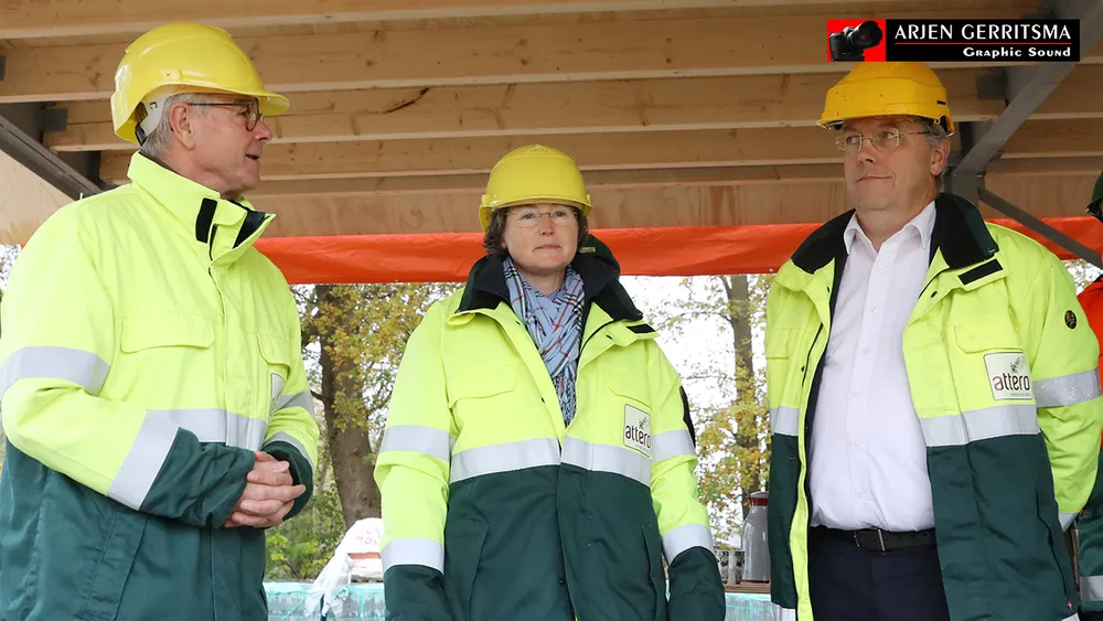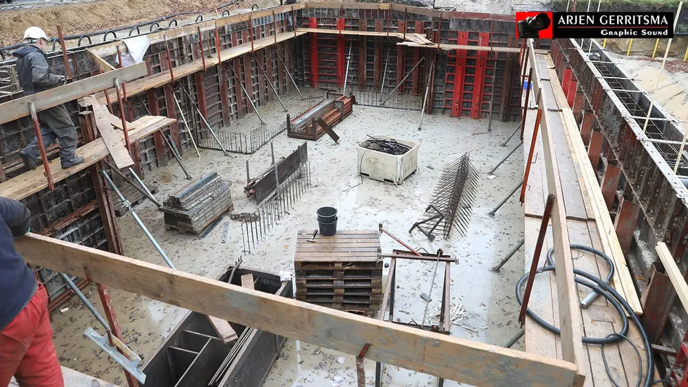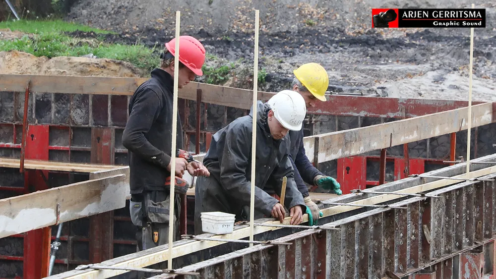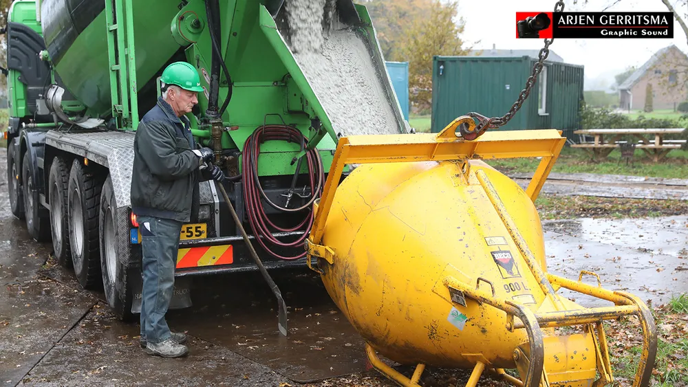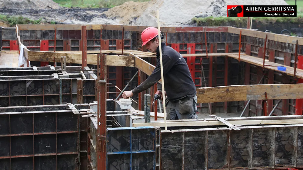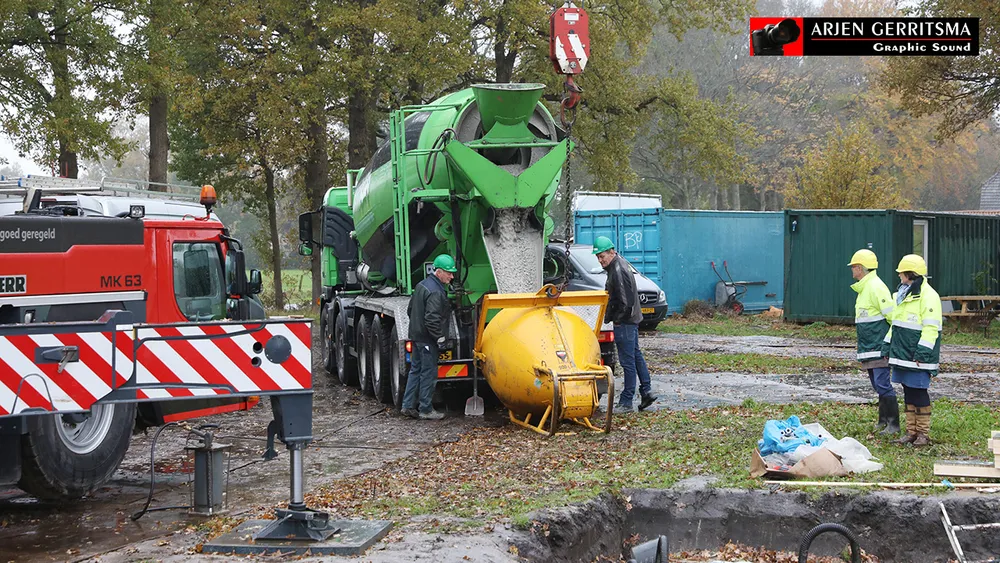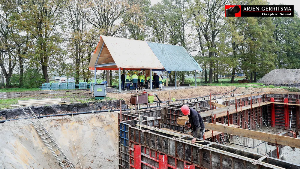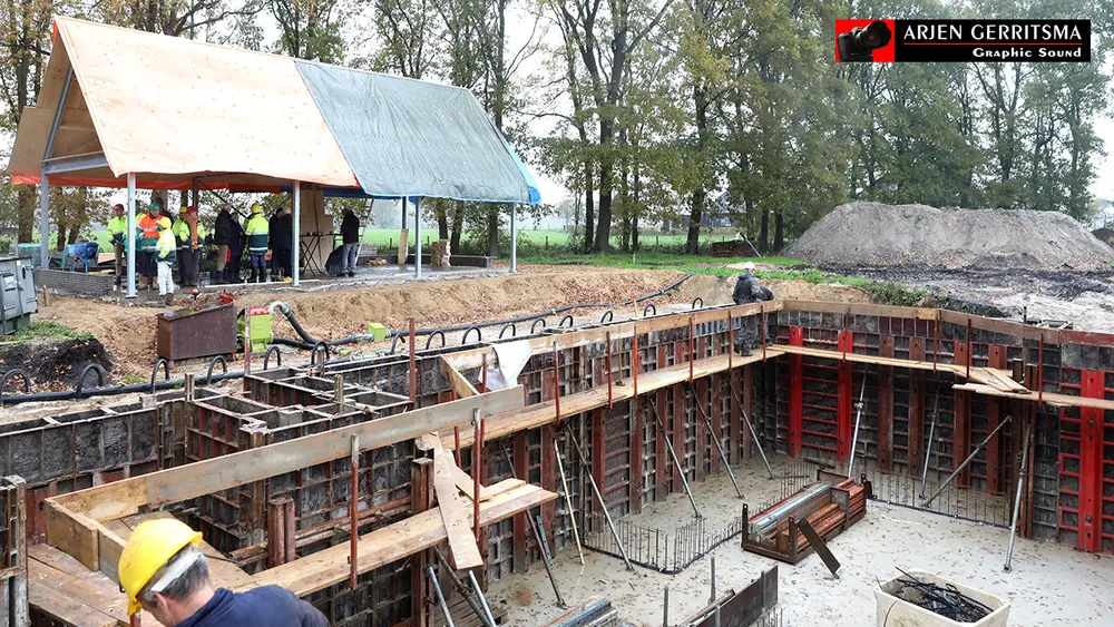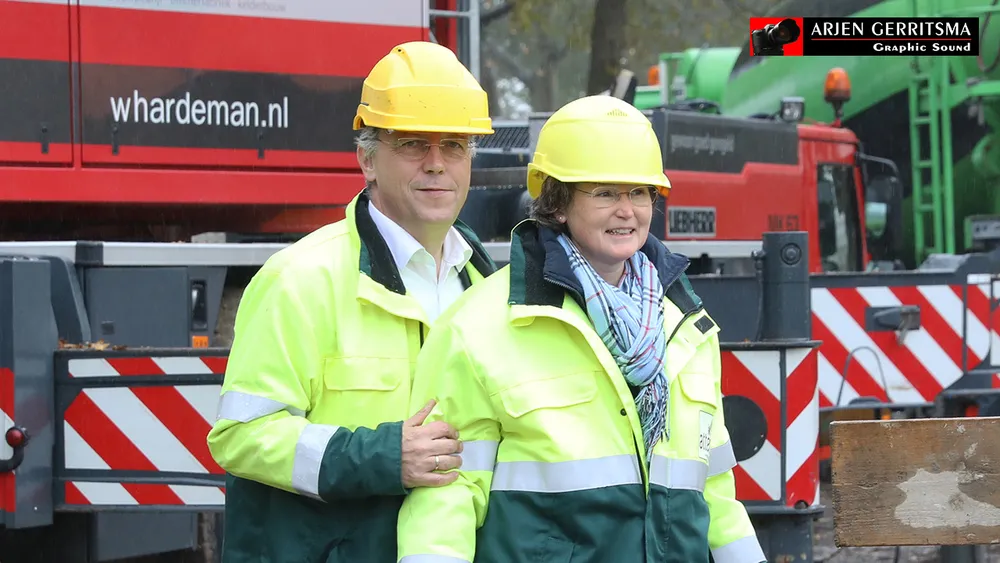 Wethouder Wim van Veelen stortte met de echtgenote van Hans Boer, Linda, vrijdagmorgen het eerste beton.