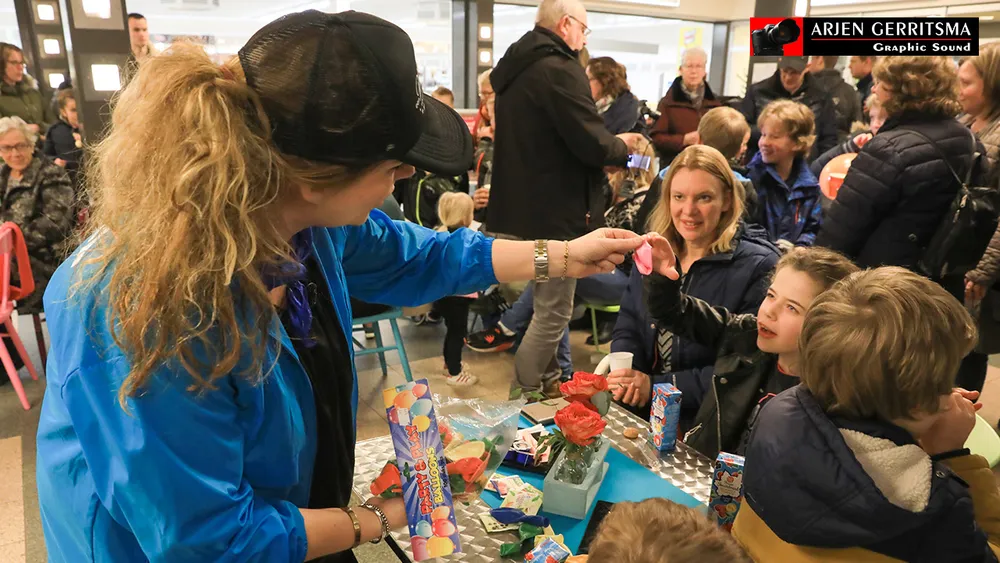 Het was vrijdagavond ‘volle bak’ in winkelcentrum Paasbos, waar medewerkers van Het Kitsche Kluisje en kapsalon Hairstyle bij het uitdelen van de hapjes.