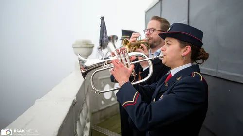 Dat was te danken aan stadsbeiaardier Wim Ruitenbeek en leden van het Nijkerks Stedelijk Fanfare Corps die zich traditiegetrouw al vroeg verzamelden bij de toreningang aan de Holkerstraat. De klim naar boven werd weer gewaagd om Koningsdag muzikaal te openen.