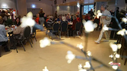 Burgemeester Tinet de Jonge spelde vrijdagmiddag bij het kerstdiner van de Zonnebloem Marjan van der Horst de versierselen op, die horen bij de benoeming tot "Lid in de Orde van Oranje-Nassau".