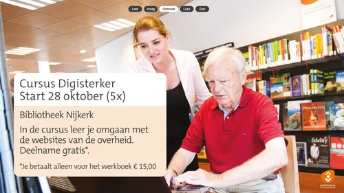 Op maandag 28 oktober 2024 start er weer een nieuwe cursus Digisterker in Bibliotheek Nijkerk. Deze cursus bestaat uit 5 bijeenkomsten van 2 uur. De cursus is gratis, je betaalt alleen het werkboek van € 15,--.