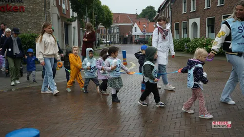 Burgemeester Tinet de Jonge was er bij, sprak de kleuters bemoedigend toe en deelde gekleurde legoblokjes uit.