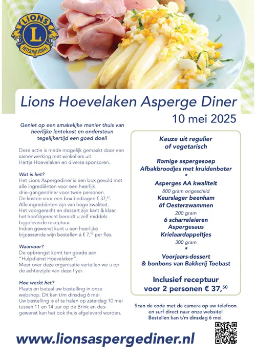 Maar hoe kan de dienst deze missie waar blijven maken? Het antwoord is simpel: door de smaakpapillen van onze gemeenschap te prikkelen met het Lions Asperges Diner!