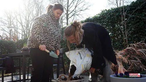 Zaterdag ging burgemeester Tinet de Jonge naar de Vrijheidslaan om daar de bewoners van 's Heerenloo te helpen met het vullen van plantenbakken.
