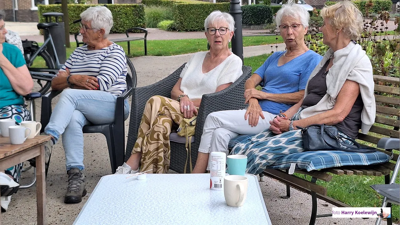 Onder het genot van een koffietje (en/of thee natuurlijk) genoten de deelnemers van elkaars gezelschap. Zo nu en dan een druppeltje regen mocht de pret niet drukken. Ze zagen elkaar veelal weer voor het eerst na de vakantie periode. Er viel weer genoeg lekker bij te kletsen.