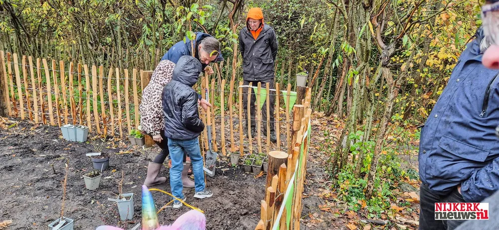 Aanplanten: Een groep plantte meerdere bomen en struiken.