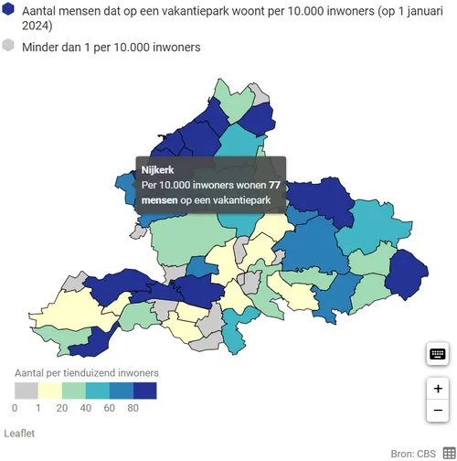 Hier kunt u zien, hoeveel mensen er op een vakantiepark wonen.