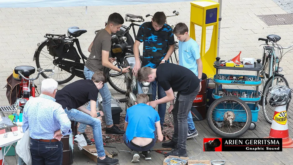 Grijs was dan ook een veel gezien kleur haar. Maar de organisatie had dit jaar het oog ook laten vallen op de jeugd. De Oldtimer Club Nijkerk (OCN) is op zoek naar jeugdleden in de leeftijd van t/m 18 jaar. Daarom was er een aparte werkplaats ingericht, waar jongelui aan brommers konden knutselen.