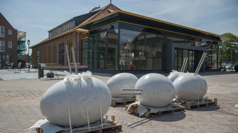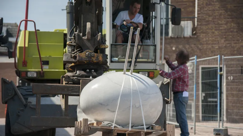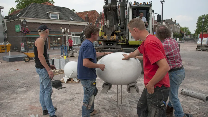 Het is gemaakt door beeldend kunstenaar en landschapsontwerper Alice Helenklaken van Handle with Care, ontwerpers openbare ruimte. De vrouwenfiguur verwijst naar de Oostermolen. Rok is een achthoek als de voet van de molen en de armen vangen als wieken de wind. De vrouw draagt een oorspronkelijk Nijkerks kapje. Samen met landschapsarchitect Sjoerd Hoogma zijn zij verantwoordelijk voor het centrumplan Oosterpoort, de geïntegreerde beeldende kunst en de fraaie verwijzing naar de voormalige Zuiderzeestraatweg. De eieren worden de komende dagen geplaatst, terwijl het beeld tot de officiële onthulling weer is afgedekt.