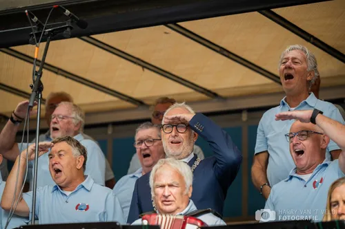 Daarna kon het feest beginnen. En er was genoeg om het gezellig te hebben. De brandweer was. Er was het Shantyfestival. Bij de opening daarvan zong burgemeester Gerard Renkam uit volle borst mee.
