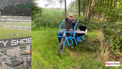 Net als vorig jaar trapte Sibert van Leeuwen met zijn zwager de duofiets door en over schitterende bospaden, heidevelden, schattige dorpjes en winderige polderwegen en randmeerdijken .
